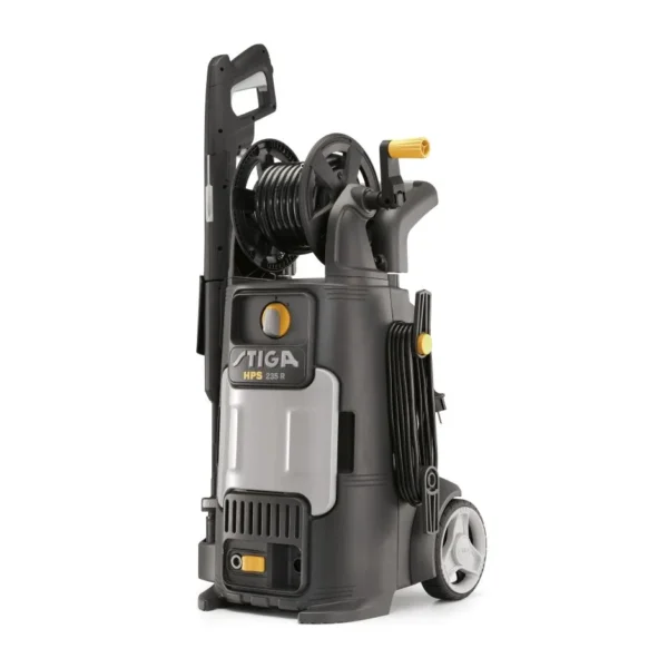 Myjka STIGA HPS 235 R została zaprojektowana z myślą o wygodzie użytkownika. Duże, 150 mm gumowe kółka oraz teleskopowy, miękki uchwyt sprawiają, że urządzenie jest nie tylko stabilne, ale również łatwe w manewrowaniu. Dodatkowo, lekka konstrukcja i praktyczny bęben do nawijania węża sprawiają, że prace porządkowe stają się prawdziwą przyjemnością.