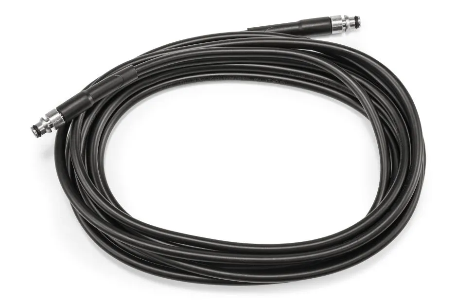 I Wąż wysokociśnieniowy z oplotem stalowym o długości 6 m zapewniający większą odporność na uszkodzenia.