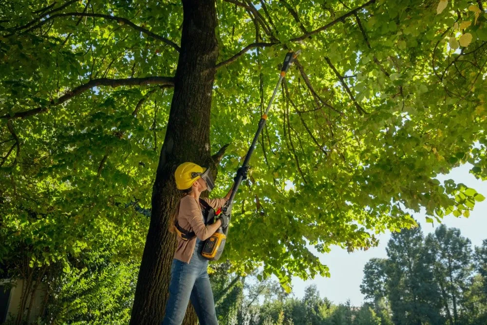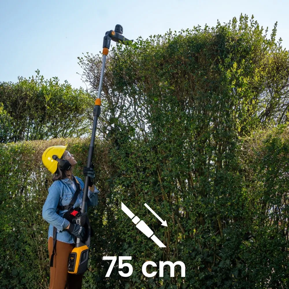Wysokie krzewy i drzewa nie stanowią problemu, ponieważ teleskopowy wałek można wysunąć do potrzebnej długości. Pozwala to osiągnąć maksymalną wysokość około 4,30 m z sekatorem lub około 4 m z podkrzesywarką.
