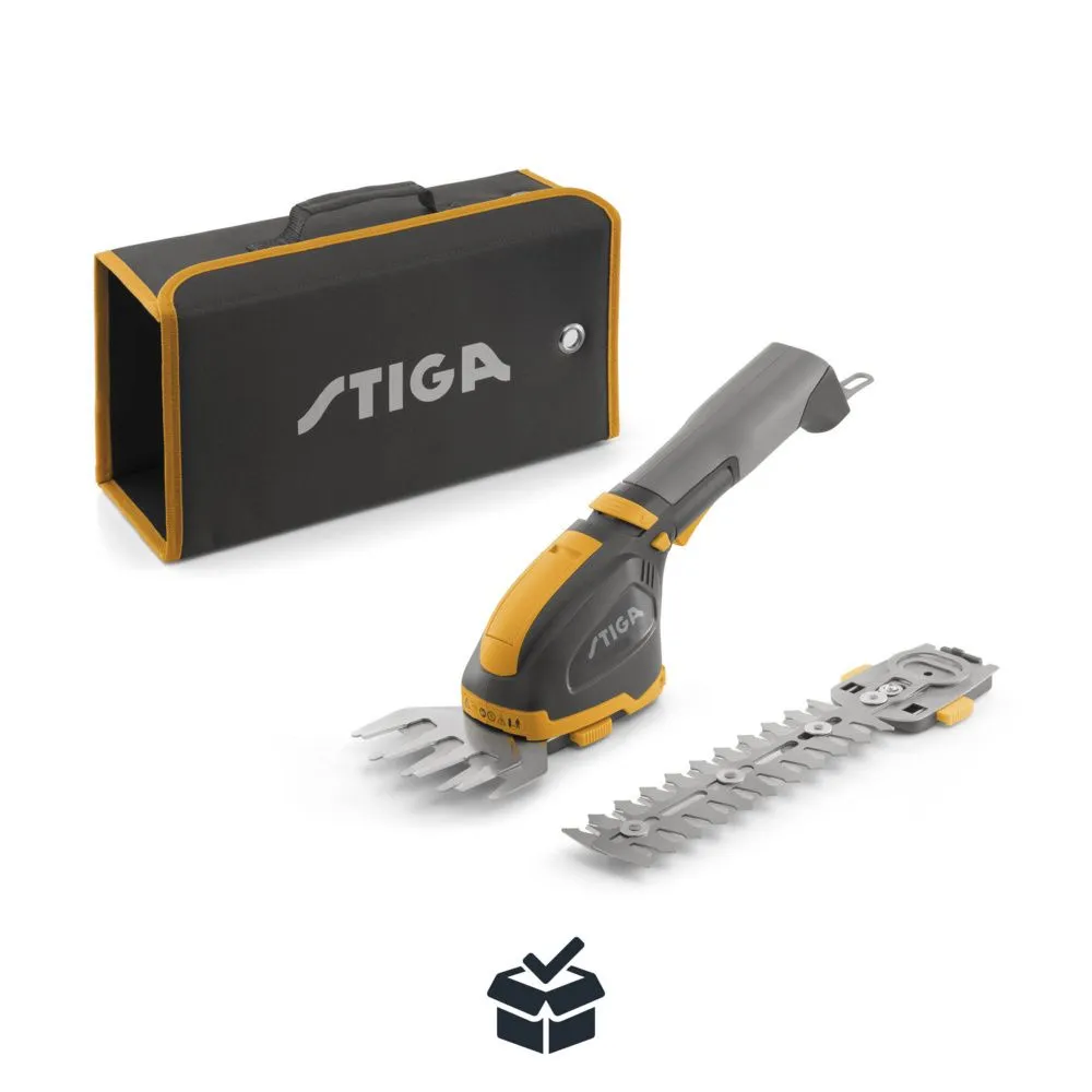 STIGA SGM 102 AE – multi tool akumulatorowy 2w1 | ostrze do trawy 11 cm + ostrze do krzewów 18 cm | bez akumulatora i ładowarki