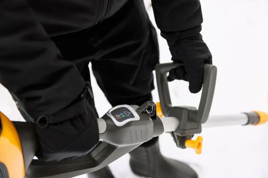 Odśnieżarka akumulatorowa STIGA ST 300e ułatwia szybkie odśnieżanie, dlatego nie tracisz czasu na ustawienia. Wkładasz akumulator do szczelnego gniazda, więc przygotowanie trwa chwilę. Następnie chwytasz miękki uchwyt z pętlą i naciskasz przycisk ON/OFF. Dzięki temu urządzenie startuje od razu, a Ty szybko ruszasz do pracy. W efekcie sprawnie oczyścisz schody, taras lub podjazd przed wyjściem.