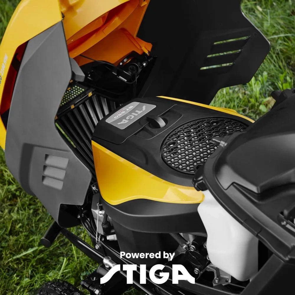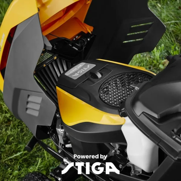 Traktorek napędza dwucylindrowy silnik STIGA ST 550 Twin o pojemności 586 cm³ i mocy 10,8 kW. To jednostka przygotowana do wydajnej pracy na większych terenach.
