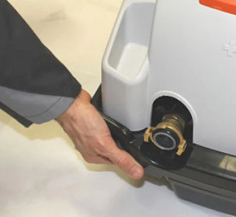 Dwa pojemniki na środek myjący o 2,5-litrowej pojemności każdy, umożliwiają stosowanie różnych środków. Pokrętło daje możliwość łatwego przełączania między zbiornikami.