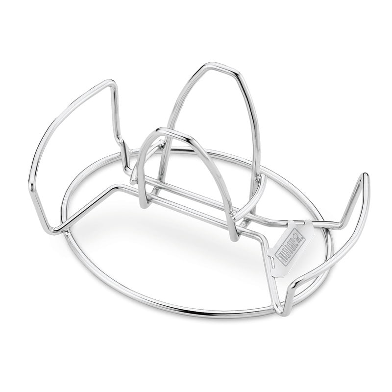 Solidny stojak do opiekania drobiu firmy Weber, to praktyczne akcesorium pozwalające na przygotowanie aromatycznego kurczaka z chrupiącą skórką. Zaletą stojaka jest to, że w środkowym pierścieniu można umieścić puszkę 330 ml ulubionego piwa i nadziać na nią kurczaka, dzięki czemu przygotowywany drób będzie niesamowicie soczysty. Ponadto akcesorium to wyposażone jest w praktyczne uchwyty, za pomocą których można go łatwo przenosić na grilla.
