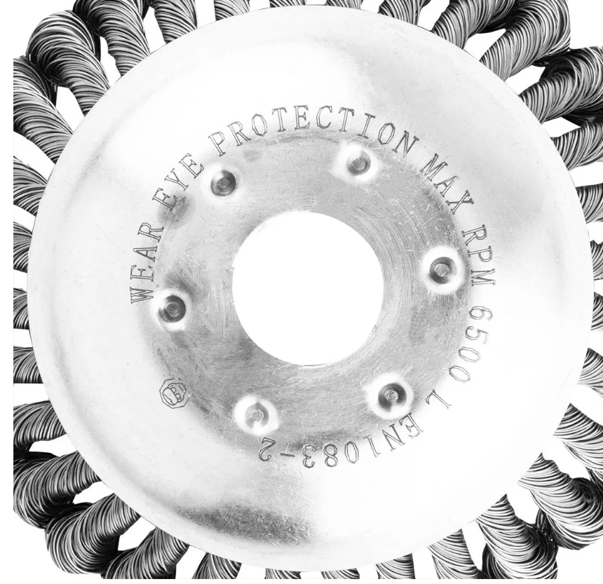 Splot stalowego drutu jest odporny na obciążenia wynikające z działania siły odśrodkowej, dzięki czemu szczotka zachowuje trwałość nawet przy intensywnym użytkowaniu. Średnica 150 mm oraz otwór montażowy 25,4 mm (1″) sprawiają, że tarcza pasuje do wielu kos spalinowych i jest łatwa w montażu.