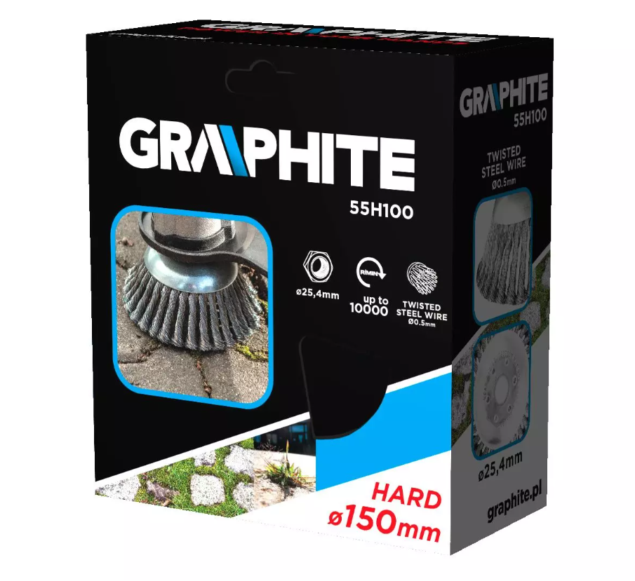 Tarcza szczotkowa GRAPHITE 55H100 o średnicy 150 mm to wytrzymałe akcesorium do kos spalinowych przeznaczone do czyszczenia kostki brukowej, usuwania chwastów ze szczelin chodników oraz czyszczenia powierzchni metalowych. Solidna konstrukcja i splatany stalowy drut zapewniają wysoką skuteczność pracy oraz długą żywotność.