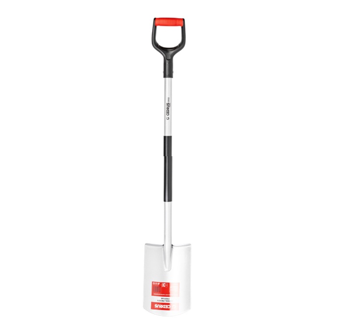 Solidny szpadel ogrodowy Cedrus DS02 z prostą głowicą przeznaczony do prac ziemnych w ogrodzie, na działce i wokół domu. Idealny do kopania, wyrównywania terenu, przygotowywania grządek oraz przesadzania roślin.