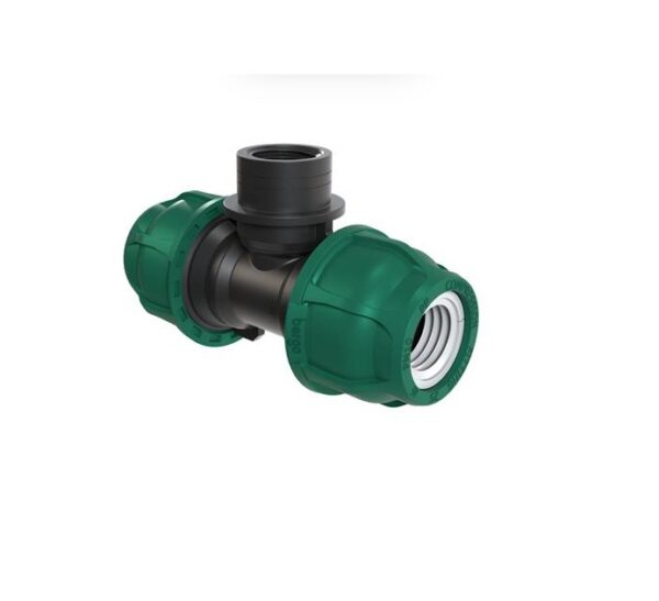 Trójnik PE F (GW) 20-1/2″-20, PN10 marki Bergo to wysokiej jakości kształtka instalacyjna przeznaczona do wykonywania rozgałęzień w instalacjach z rur polietylenowych oraz podłączania elementów gwintowanych. Umożliwia połączenie dwóch rur PE o średnicy 20 mm oraz dodatkowego elementu z gwintem wewnętrznym 1/2″, takiego jak zawory, filtry czy zraszacze.