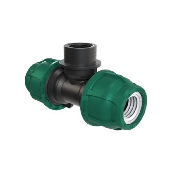 Trójnik PE F (GW) 32-3/4″-32, PN10 marki Bergo to wysokiej jakości kształtka instalacyjna umożliwiająca rozgałęzienie instalacji z rur polietylenowych oraz podłączenie elementów gwintowanych. Produkt pozwala na połączenie dwóch rur PE o średnicy 32 mm oraz dodatkowego elementu z gwintem wewnętrznym 3/4″, takiego jak zawory, filtry, kolektory czy inne komponenty systemów wodnych i nawadniających.
