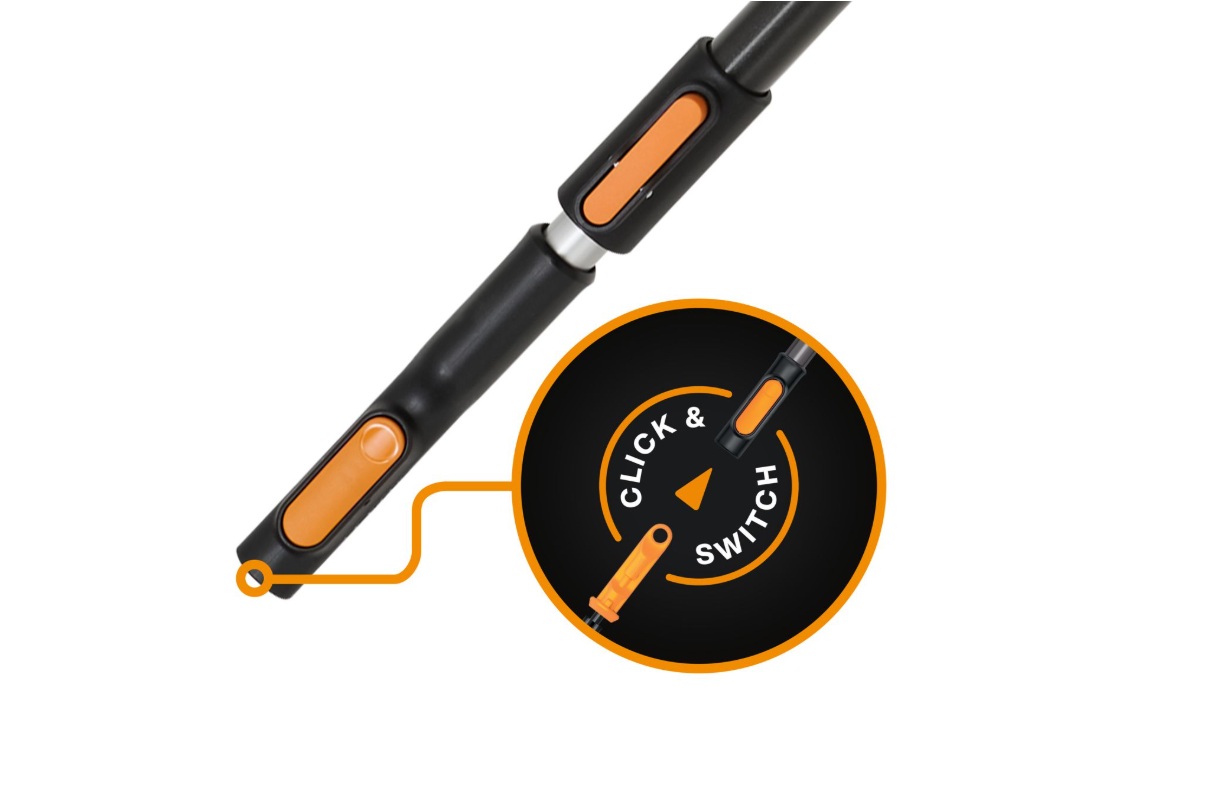 Regulacja do 400 cm pozwala pracować bez drabiny 🪜❌, zwiększając wygodę i bezpieczeństwo przy przycinaniu, czyszczeniu czy zbiorach.