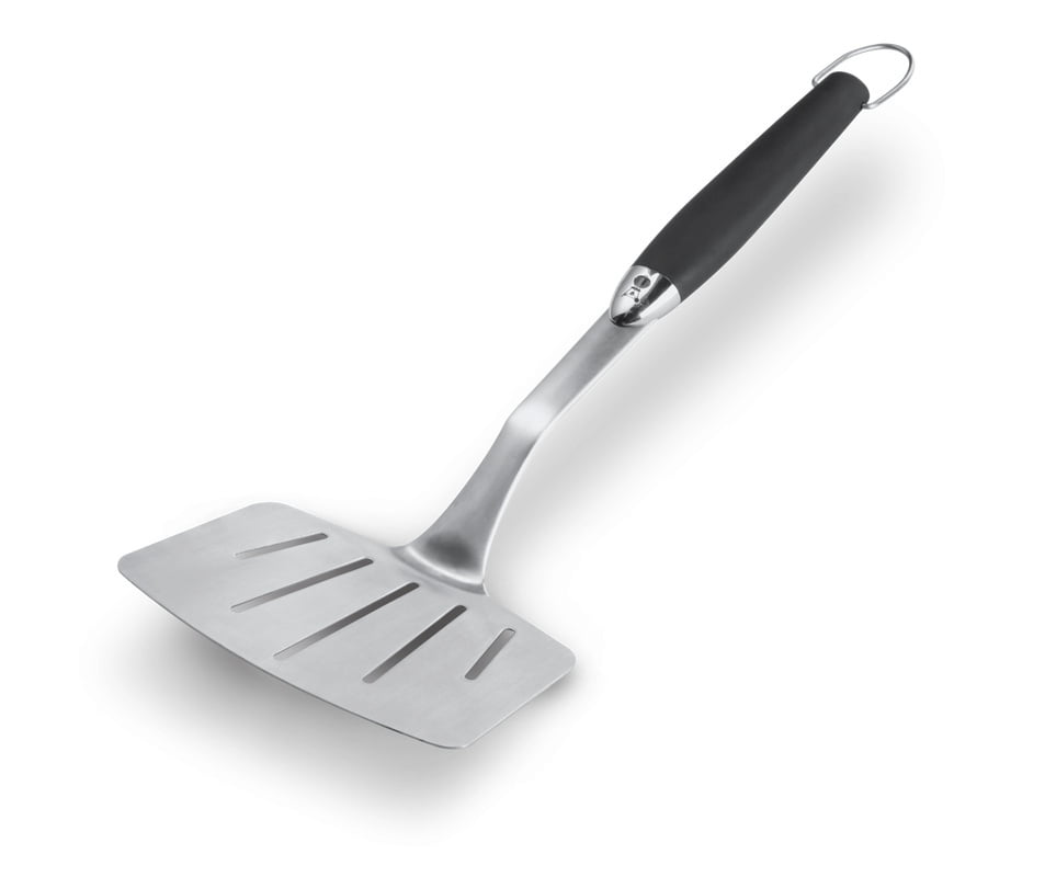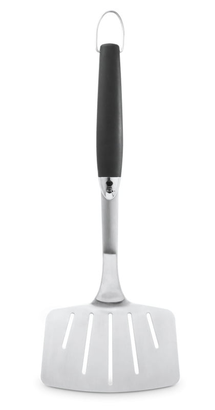 - Wyprofilowana szyjka łopatki przechodzi ponad krawędzią grilla, utrzymując ręce z dala od gorąca.