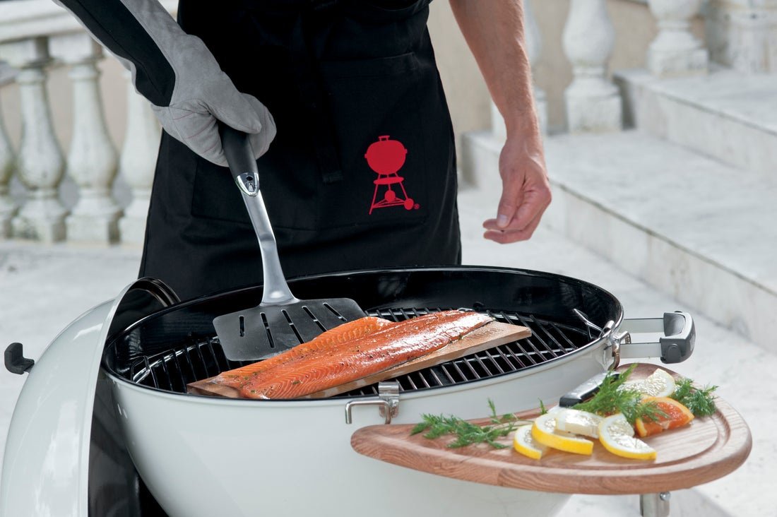 Wysokiej jakości szeroka łopatka do grillowania Premium fachowej firmy Weber, to wyjątkowe akcesoria gwarantujące precyzyjną kontrolę i łatwość przemieszczania potraw. Akcesorium wyposażone jest w antypoślizgową, plastikową rączkę, która pewnie leży w dłoni. Ponadto wyprofilowana szyjka łopatki umożliwiają bezproblemowe podsuwanie oraz precyzyjne obracanie przygotowywanych potraw. Nadająca się do mycia w zmywarce szpatułka posiada dodatkowo pętelkę, która umożliwia zawieszenie i przechowywanie, np. na haczyku obok grilla.