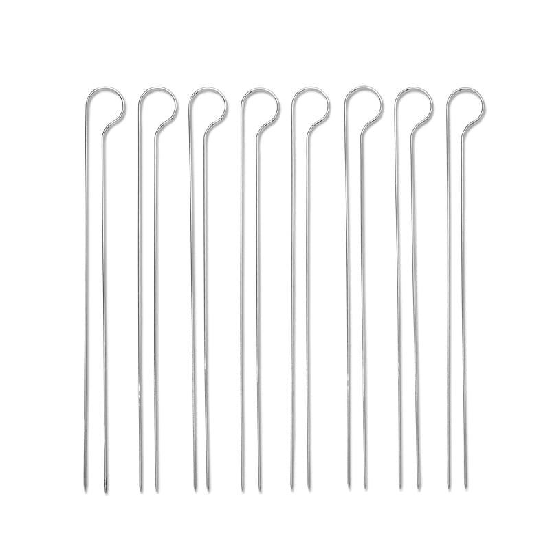 Solidne szpadki z podwójnym końcem do szaszłyków wykonane z wysokiej jakości stali nierdzewnej zaprojektowane zostały do grillowania wielopoziomowego pozwalając Ci na efektywne zwiększenie powierzchni grillowania oraz umożliwiając eksperymentowanie z przystawkami lub dodatkami z grillowanych krewetek, ananasów i warzyw, w trakcie gdy pod spodem skwierczy danie główne. Ponadto zastosowane podwójne ostrza zapewniają, że składniki pozostaną w pierwotnym położeniu nawet podczas obracania szpadek. Zestaw składa się z ośmiu szpadek, które nadają się wyłącznie do mycia ręcznego.