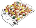Sześć szpikulców do szaszłyków ze stali nierdzewnej oraz stojak z chromowanej stali to zestaw idealny do przyrządzania przeróżnych szaszłyków. Dzięki innowacyjnemu rozwiązaniu szaszłyki nie przyklejają się do rozgrzanego rusztu i bez przeszkód będzie można je obracać podczas grillowania.