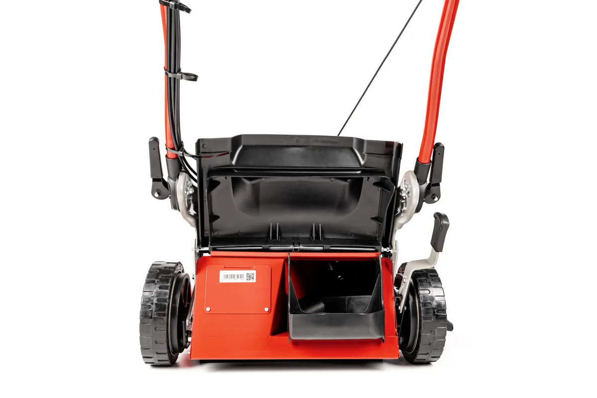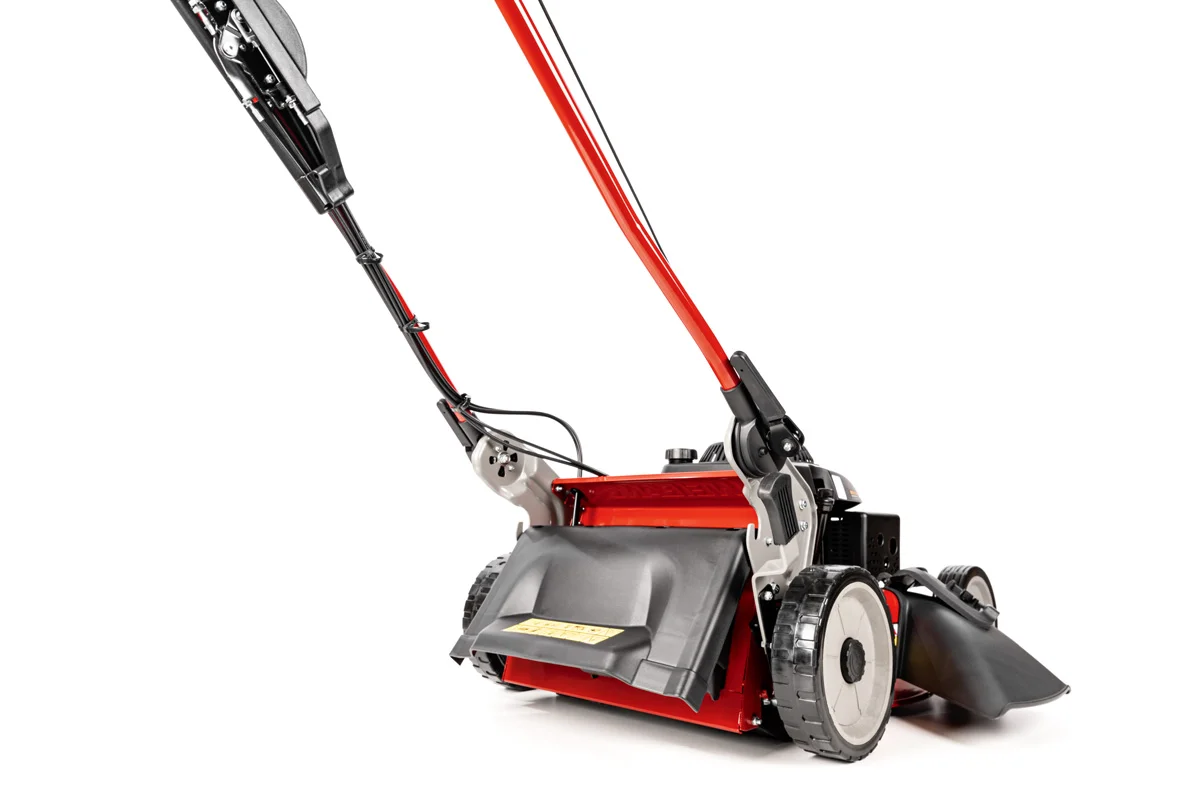 Stalowa obudowa kosiarki jest pokryta antykorozyjną farbą, gwarantującą ochronę przed korozją na długie lata. Profilowany nóż, pozbawiony paska i osłony, idealnie zbiera skoszoną trawę, pozostawiając trawnik nieskazitelnie czysty.