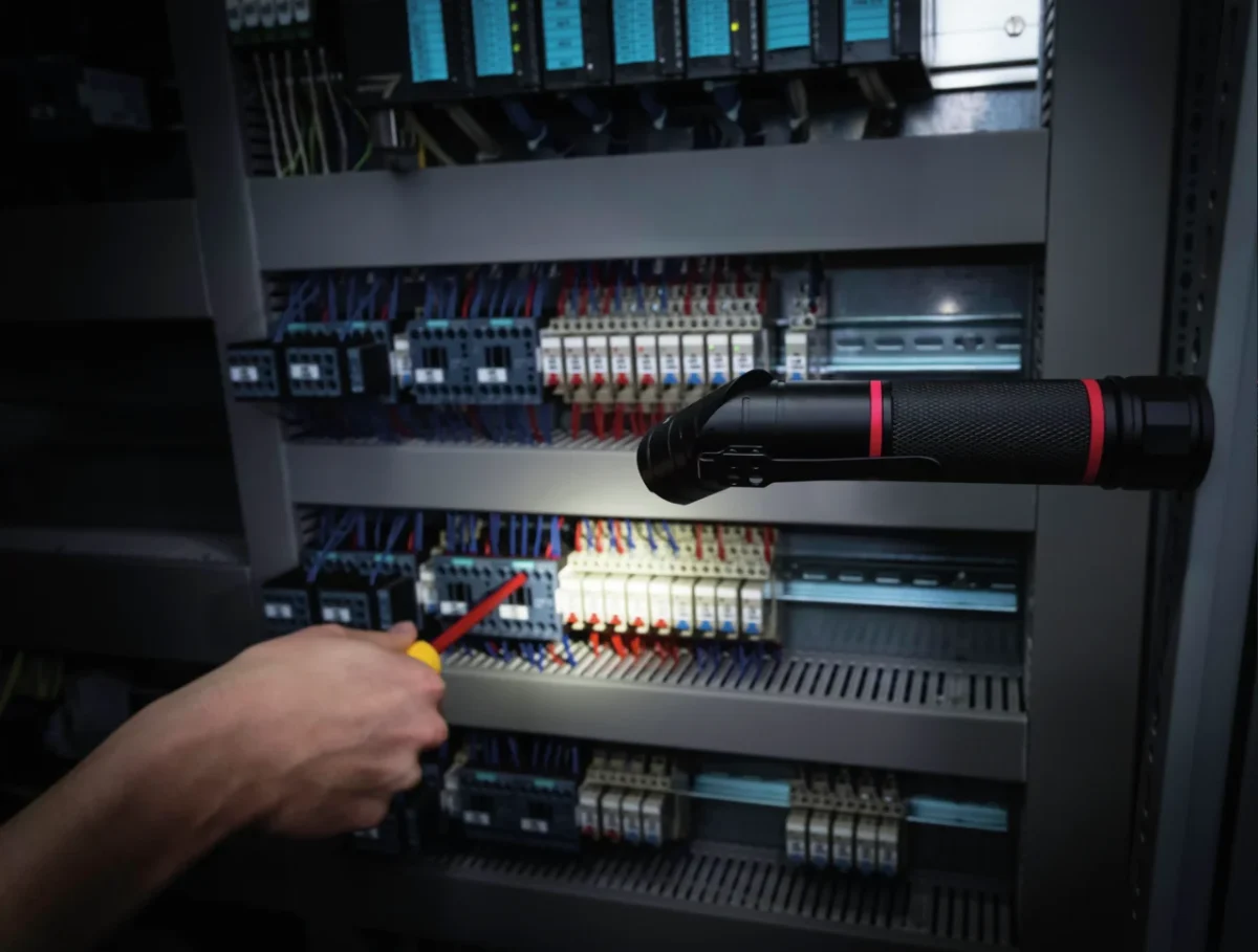 Latarka Wiha 41286 posiada praktyczny klip oraz magnetyczną funkcję mocowania, dzięki czemu uwalnia ręce, zapewniając maksymalną swobodę ruchów. Dodatkowo jej obrotowa głowica w kształcie litery L pozwala skierować strumień światła pod dowolnym kątem, co czyni ją idealnym rozwiązaniem do pracy w miejscach trudno dostępnych, jak szafy sterownicze czy instalacje sufitowe.