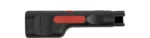 Narzędzie zostało wyposażone w samonapinający zacisk zabezpieczający, który stabilnie prowadzi kabel i jednocześnie chroni użytkownika przed przypadkowymi urazami. Duża średnica rękojeści zapewnia pewny chwyt, a dodatkowo w jej wnętrzu umieszczono ostrze rezerwowe, gotowe do użycia w każdej chwili.