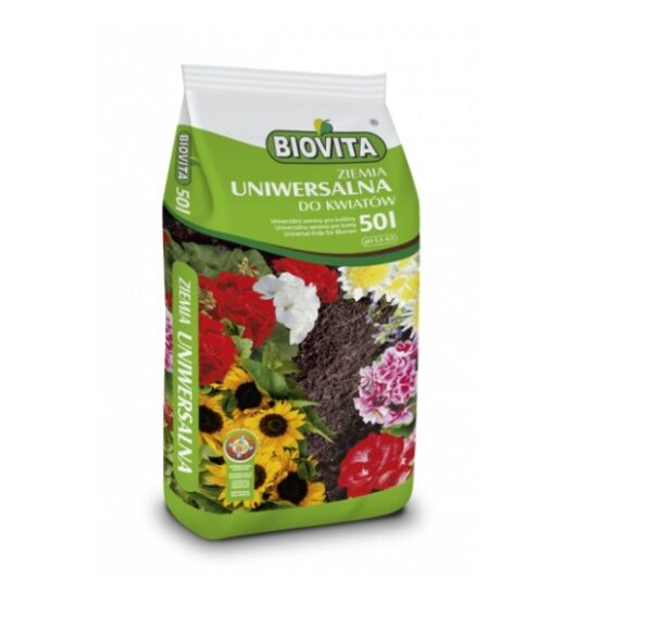 Ziemia uniwersalna BIOVITA 50 l to wysokiej jakości podłoże ogrodnicze przeznaczone do szerokiego zastosowania w uprawie roślin domowych, balkonowych i ogrodowych. Starannie dobrana mieszanka torfów oraz składników mineralnych zapewnia optymalną strukturę gleby, odpowiednią przepuszczalność oraz właściwe napowietrzenie systemu korzeniowego. Podłoże wzbogacone w składniki odżywcze wspiera zdrowy rozwój roślin, ich intensywny wzrost oraz bujne kwitnienie. Idealna do sadzenia, przesadzania oraz uzupełniania gleby.